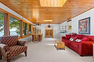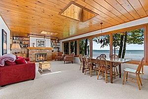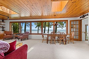 Waterfront ranch style home with Lake Michigan as your back yard. Life doesn't get better than this. Well maintained ranch style home including 4 bedrooms and 3 full baths and wood burning fire place. The gazebo would make a great remote work office. The home has a family room with a ensuite at one end and 3 bedrooms at the with an open concept kitchen, dinning room and living room in between. 162 feet of private shoreline to enjoy.