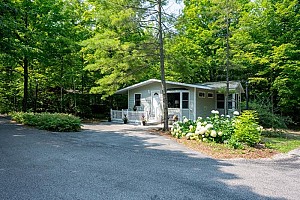 Here is your chance to own a Door County cabin in the woods! This Wonderful unit is a corner unit with 2 lots providing a significant amount of privacy. Inside, this unit has 2 bedrooms which is rare at Heritage Lake Resort. The second bedroom/den also has its own half bath. The unit features beautiful wood floors throughout. French doors and a large kitchen. Furnace/AC unit is new as of October 2020. All furniture is included. $6400.00 new roof credit at Closing. Enjoy this unit and all the wonderful amenities of Heritage Lake Resort.