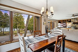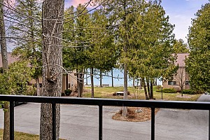 Great second-floor UPDATED unit at Rocky Shores! This is a private end Unit with a great WATERVIEW & close proximity to the outdoor pool. Open concept floor plan with large windows in the living room & dining room giving great natural light. Updates include: Luxury vinyl floors, kitchen cabinets/counter-tops, primary bathroom, interior doors, newer appliances, lighting and blinds. Relax on the patio, cozy up to the fireplace or enjoy the outdoor pool, tennis court/pickleball or common shore area. Beautifully-maintained grounds, Rocky Shores has 900 feet of common shoreline on the Green Bay waters & is just a short distance to golfing, village marina, shops & dining - a perfect Door County retreat! Buyer to verify all room measurements.